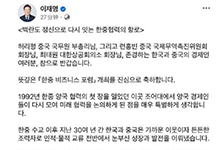 한국주재 중국대사: 중한 호혜협력, 질적 업그…