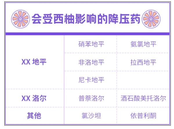 매일 혈압약을 먹어야 하는 경우를 례로 들면 자몽을 먹으면 혈압약복용량이 증가하여 저혈압을 일으키기 쉽고 가벼운 경우에는 현기증, 심하면 기절하거나 심지어 쇼크를 일으킬 수 있다.