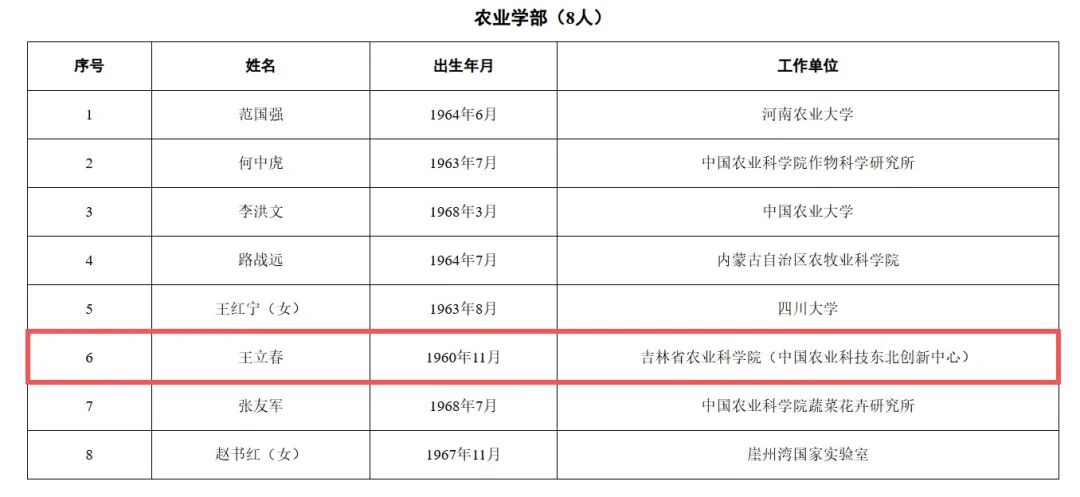 11월 21일, 중국과학원과 중국공정원은 2025년 원사 추가선출결과를 발표했는데 중국과학원 원사 73명과 중국공정원 원사 71명이 선거로 산생되였다. 길림성에는 2명의 량원 원사가 새롭게 선출되였는데 중국과학원 장춘광학정밀기계물리연구소 연구원 갑평(贾平)이 중국과학원 원사(정보기술과학부)로 선출되고 길림성농업과학원 학술위원회 주임, 주요량식작물국가공정연구쎈터 주임, 연구원 왕립춘(王立春)이 중국공정원 원사로 선출되였다. 왕립춘은 길림성농업과학원의 첫번째 중국공정원 원사이기도 하다.