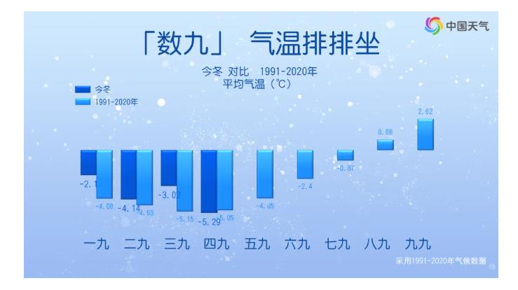 통계에 따르면 올해 겨울 삼구(1월 8일-16일) 동안 전국 기온은 뚜렷하게 높아 같은 기간중 세번째로 따뜻했으며 사구(1월 17일-25일)기간 전국 기온은 뚜렷하게 낮았다.