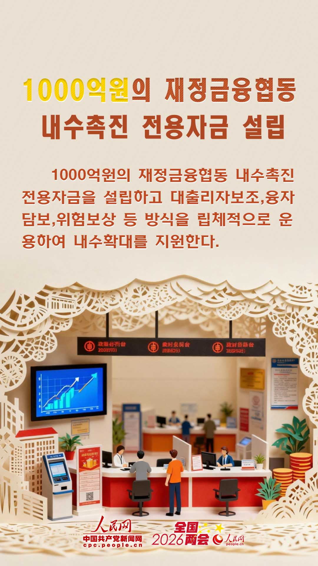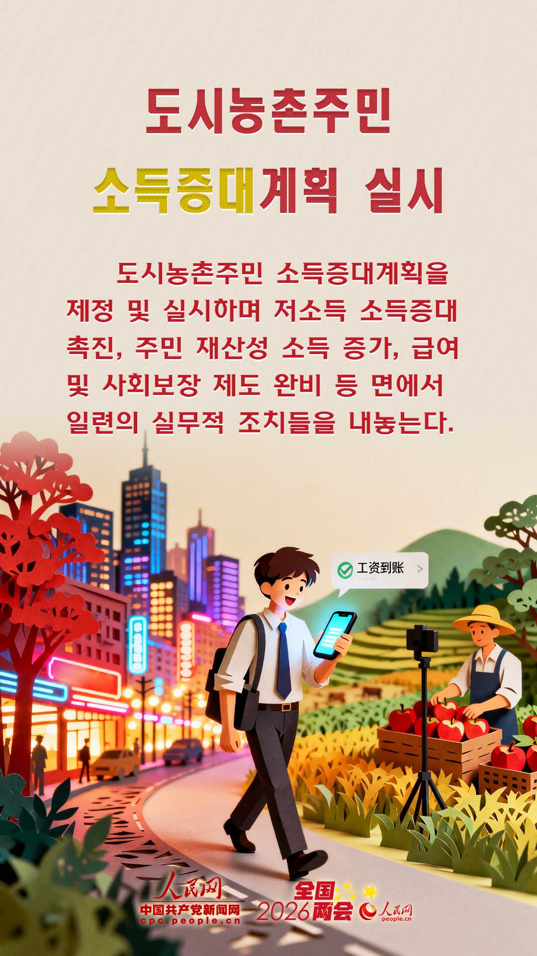 1000억원의 재정금융협동 내수촉진 전용자금 설립, 도시농촌주민 소득증대계획 실시, 보통고중 학위공급 증가, 도시농촌주민 기초양로금 월 최저표준 인상……2026년 정부사업보고의 모든 실질적인 조치들이 우리의 생활과 관계된다.